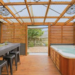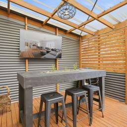 Designed for entertaining, this home is all about relaxed weekends: soak in the spa while the game plays on the outdoor big screen. A stunning kitchen, sumptuous bathroom, second toilet, clever storage throughout and a versatile studio space sit securely behind electric gates.