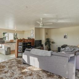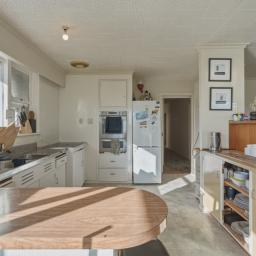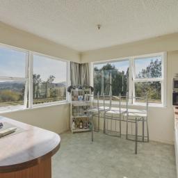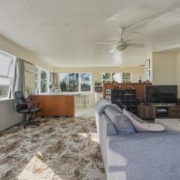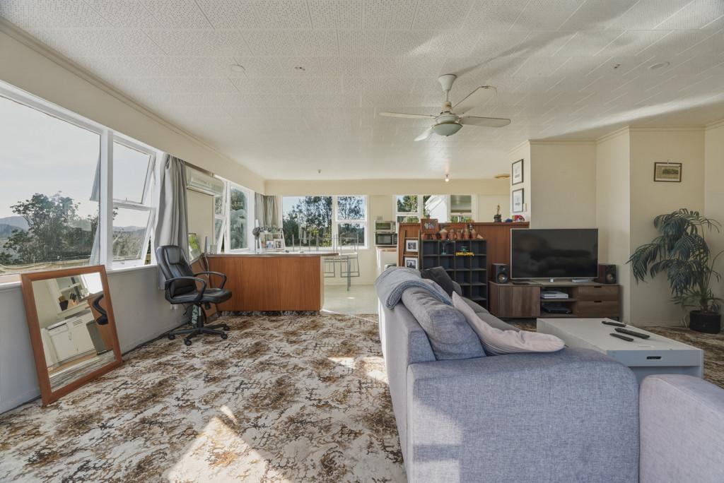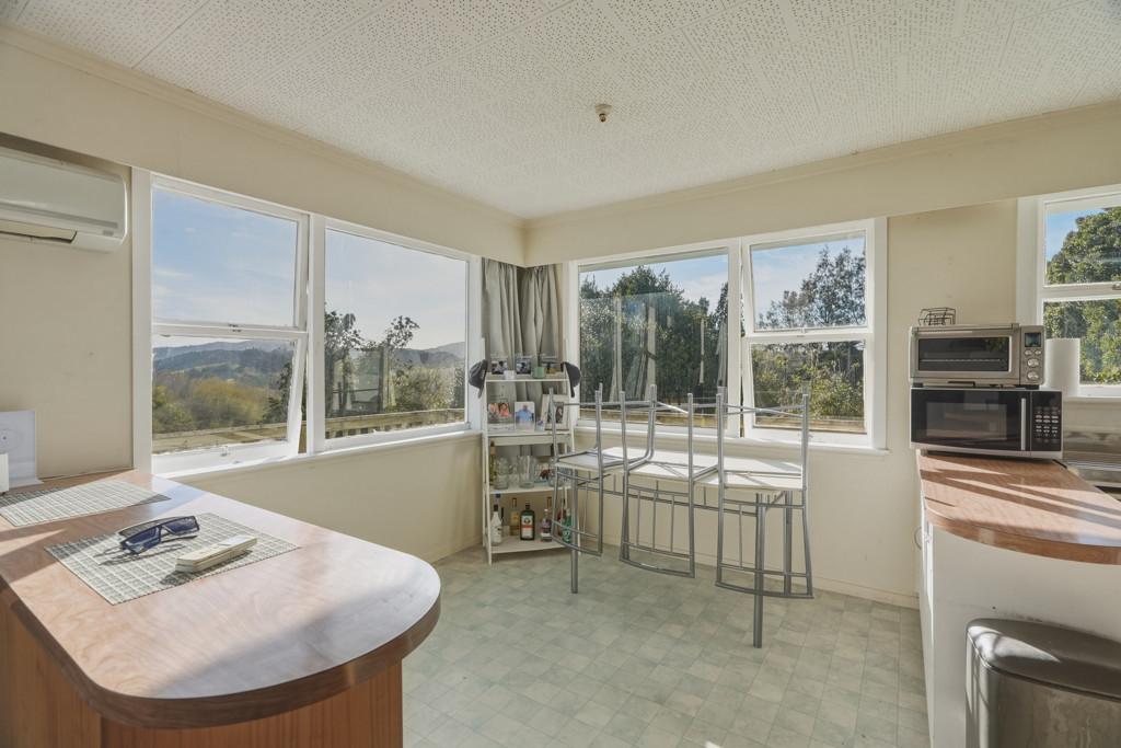 The home features open plan living, dining, and kitchen areas, creating a welcoming central hub for family life. Native timber flooring adds warmth and character, while the windows frame peaceful green outlooks in every direction. The kitchen is functional and practical, ready to enjoy as is or enhance over time.