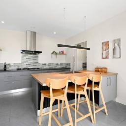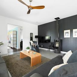 A formal lounge, effortlessly accessed from the main living space, complements the outstanding floorplan. The living zones are warmed by a stylish wood burner, and the entire home benefits from underfloor heating throughout, ensuring year-round comfort.