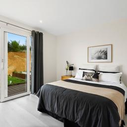 The master bedroom is a true retreat, featuring a ranch slider that opens onto a private deck-perfect for enjoying a book and morning coffee. The master suite also boasts a walk-in wardrobe and a luxurious ensuite with a dual-head shower, offering both a waterfall and a dumper option for ultimate relaxation.