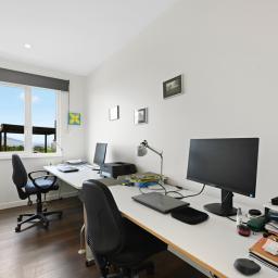 Three additional spacious bedrooms are serviced by a sumptuous guest bathroom, which also features a dual-head shower for added comfort. A designated home office provides the perfect work-from-home solution, while a loft above the garage creates an ideal haven for teenagers or additional guest accommodation.