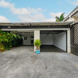 Single garage plus carport, and a large storage room behind.