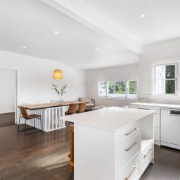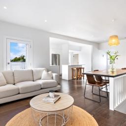Inside, the new Scandi-style kitchen anchors the open-plan living area. It's a bright, welcoming space featuring warm timber floors and a wood-burner for a cozy atmosphere. The layout is designed for easy entertaining, with seamless flow to the sun-drenched deck-perfect for weekend barbecues or a quiet coffee in the sun.