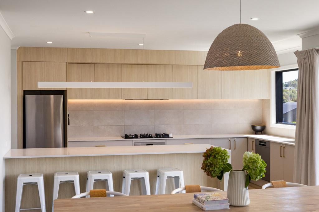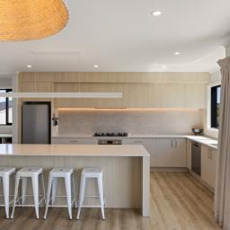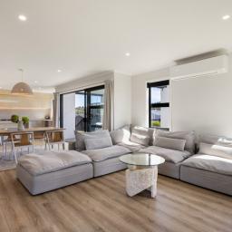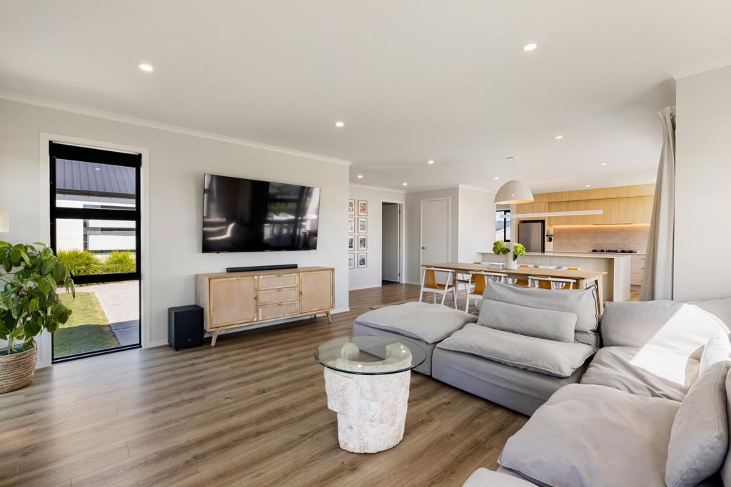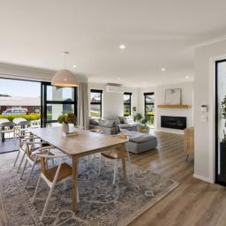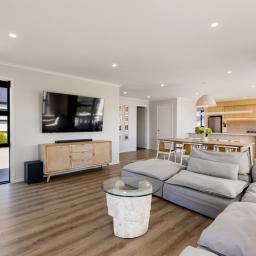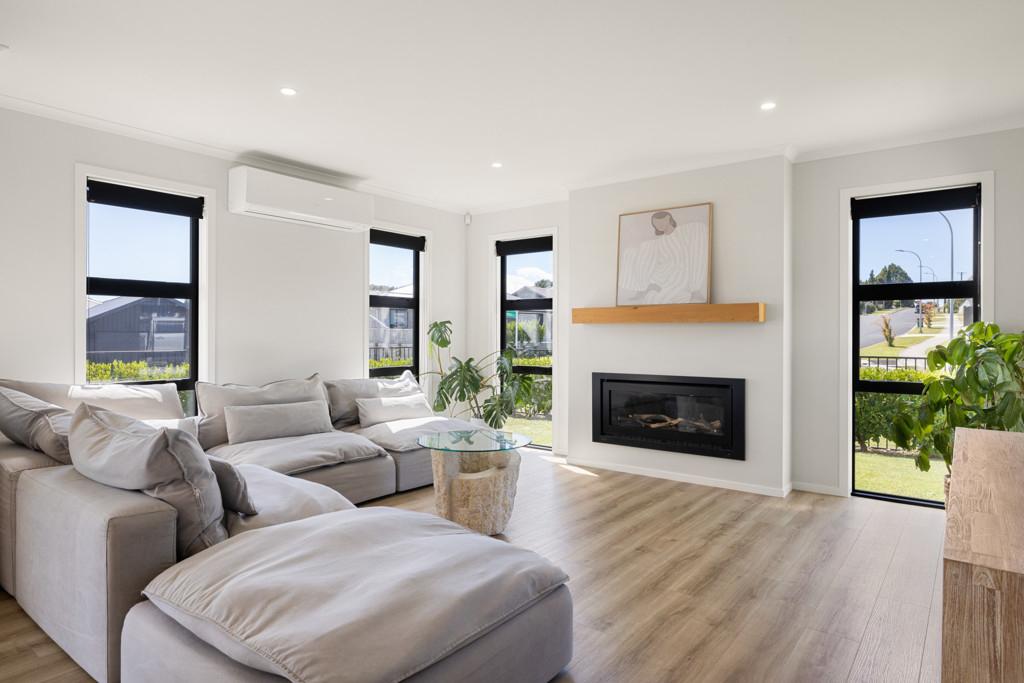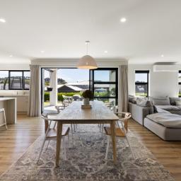 From the moment you step inside, the home reveals a sense of considered design and quality. The open-plan living and dining area forms the heart of the home, enhanced by feature lighting and anchored by a cosy lounge complete with a gas fireplace creating a warm and inviting atmosphere year-round.