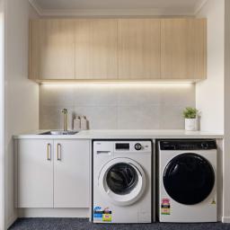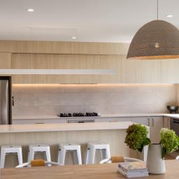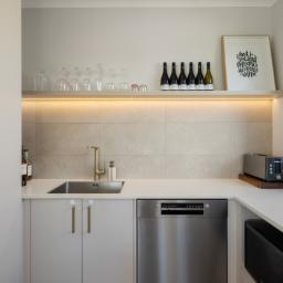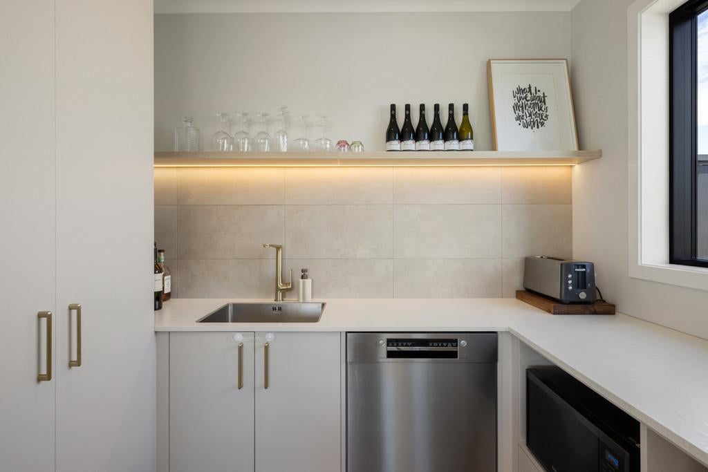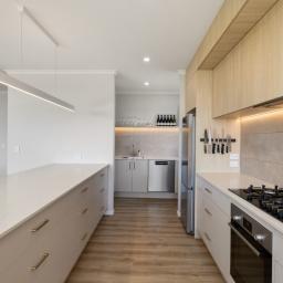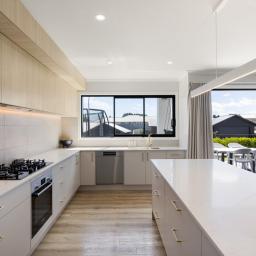 At the centre of it all sits the designer chef's kitchen, a true showpiece for those who appreciate both style and functionality. An oversized kitchen island bench forms the social hub of the home, complemented by dual dishwashers, premium appliances, gas cooking, and a cleverly hidden scullery that keeps preparation and entertaining seamlessly separate.