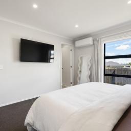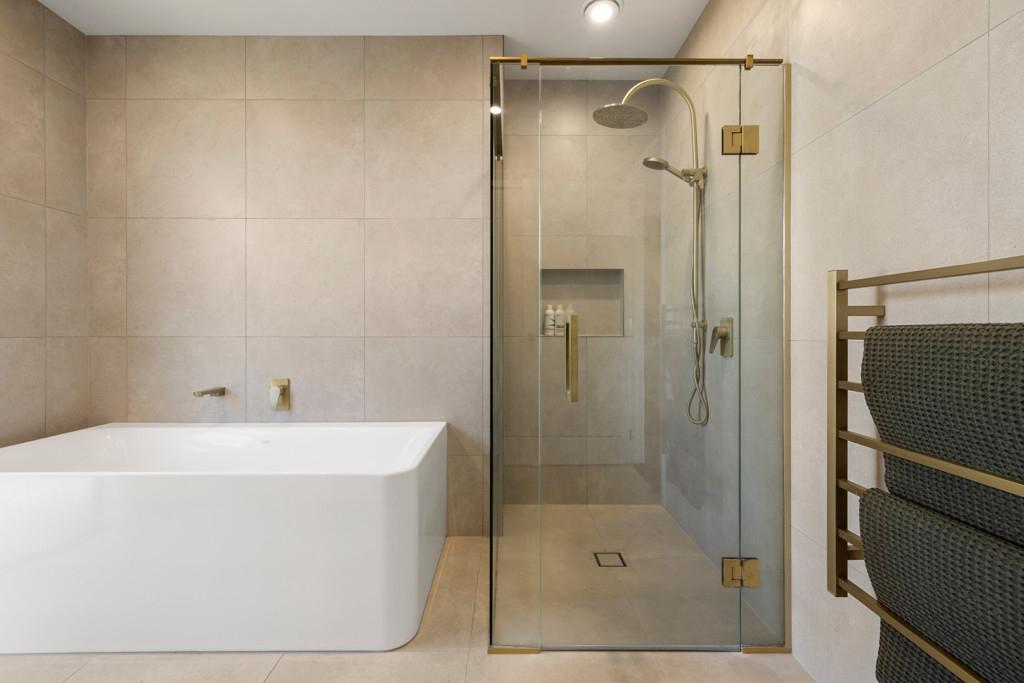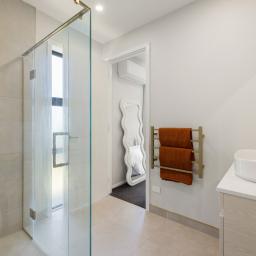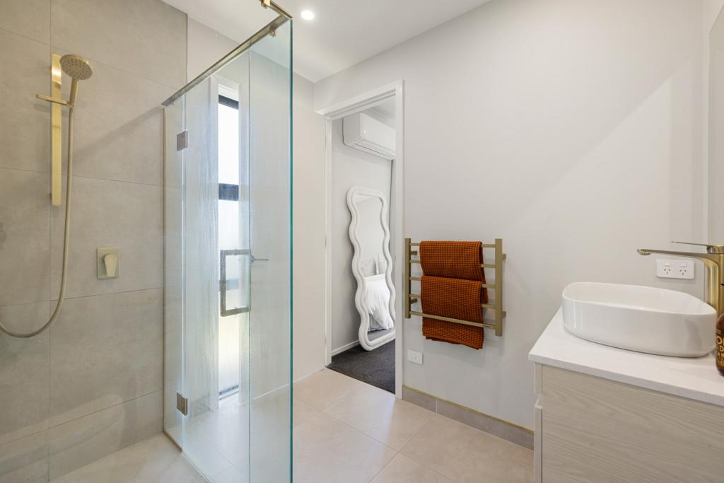 The master suite offers a private retreat, complete with a beautifully finished ensuite, while the additional bedrooms are generously proportioned for family or guests. The bathrooms are finished to an exceptional standard, featuring high end tapware and striking floor-to-ceiling designer tiles that create a luxurious hotel-like feel.