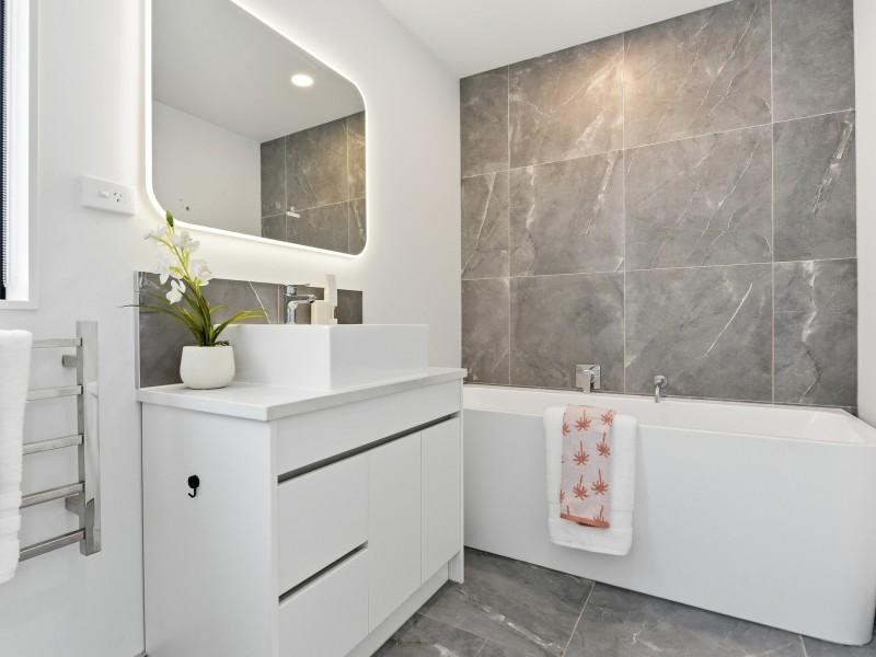 Spanning two thoughtfully designed levels, the home offers four bedrooms and three appointed bathrooms. The upper-level features three bedrooms, including a generous master suite with a walk in wardrobe and a ensuite. The remaining two bedrooms enjoy their own dedicated family bathroom, complete with accent tiles and a full bathtub—perfect for unwinding after a long day.