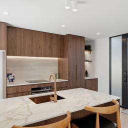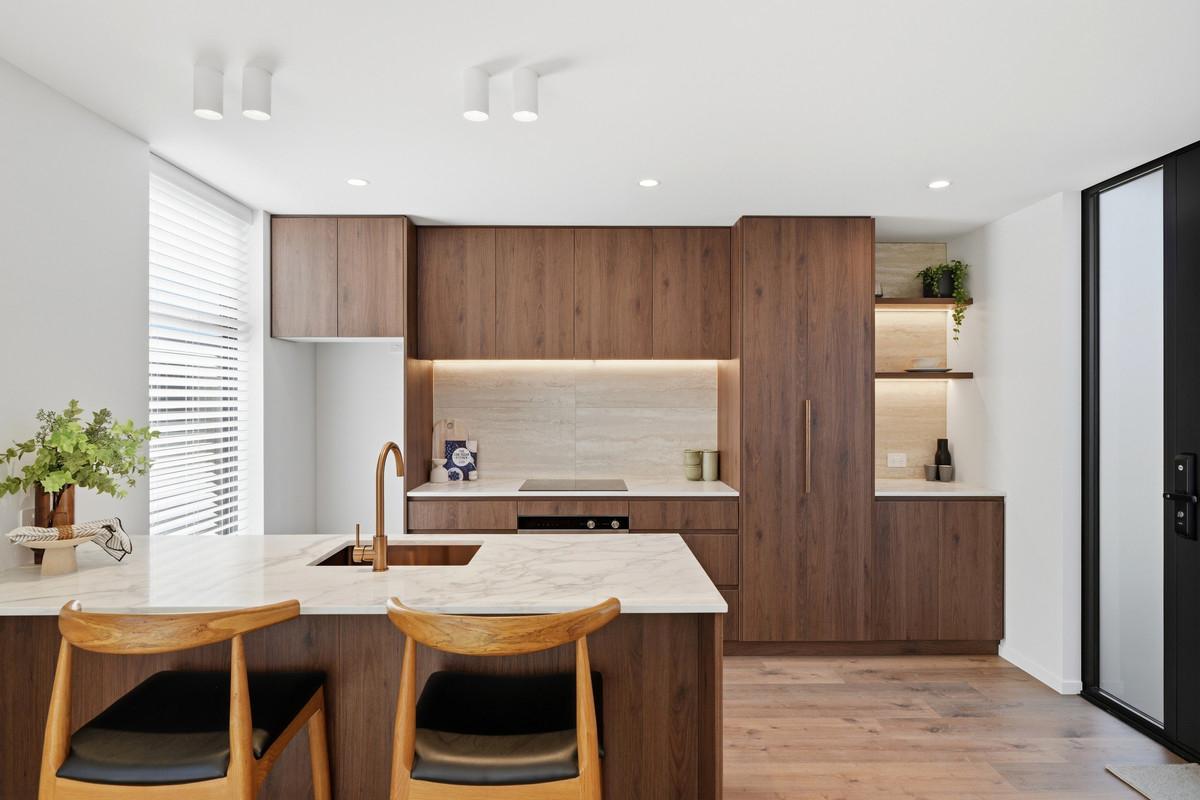Carefully designed to balance modern style with everyday practicality, this home delivers contemporary living across two thoughtfully planned levels. The generous kitchen is both stylish and functional, featuring a marble benchtop, quality cabinetry and excellent storage. With clever built-in storage throughout, a study nook under the stairs, and refined design details like brass handles and joinery, this home offers high end aesthetic and a considered approach to modern living.