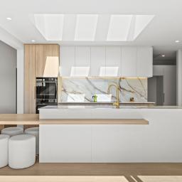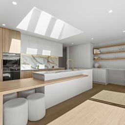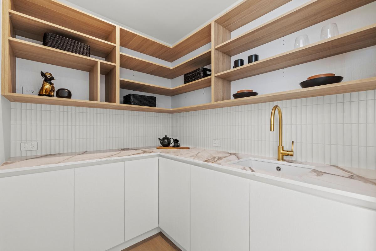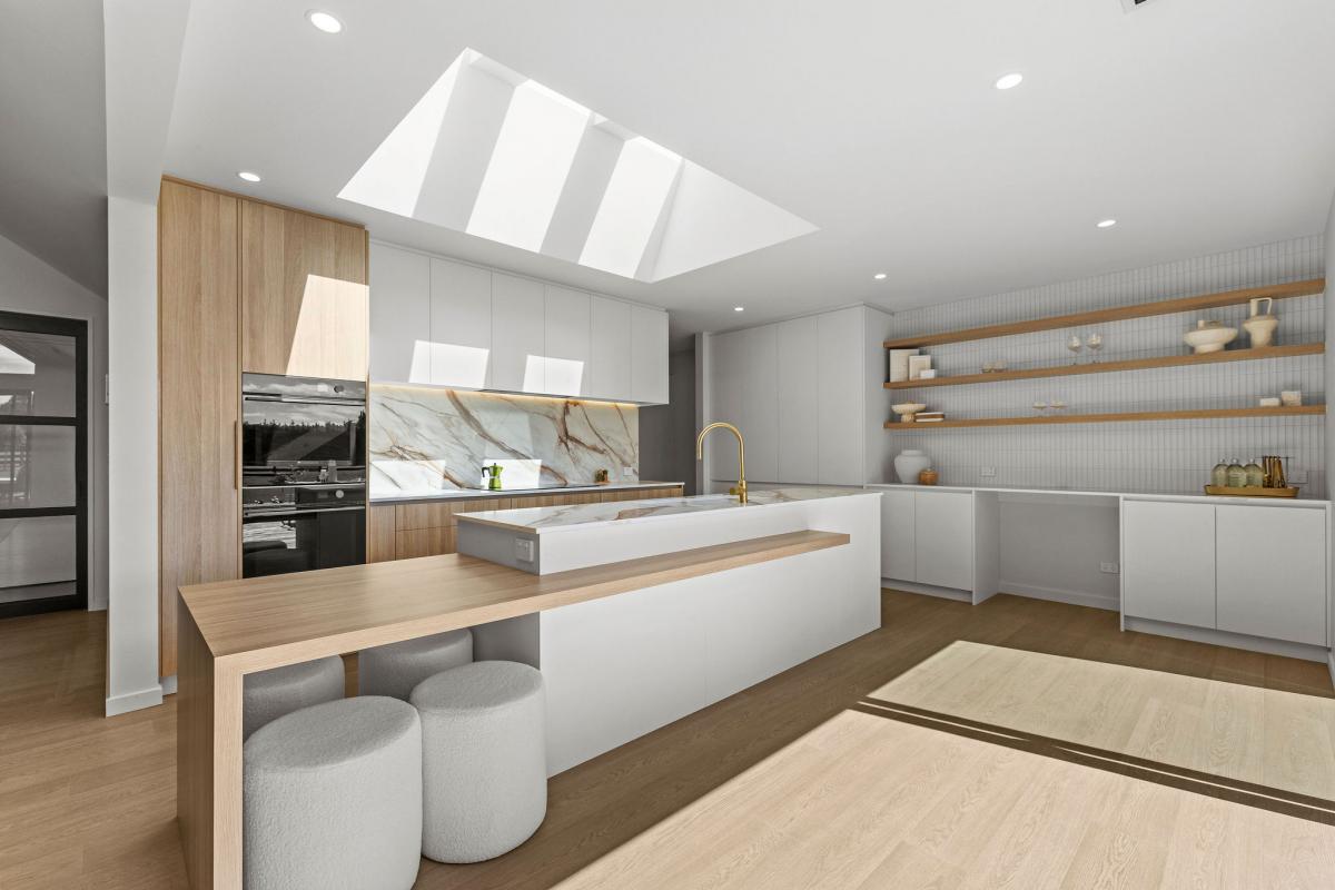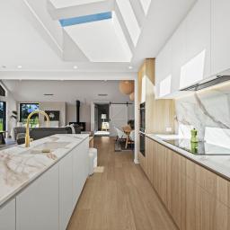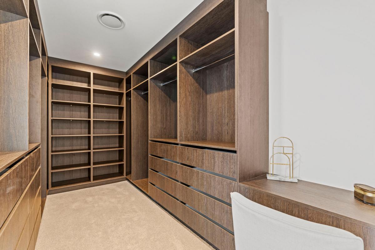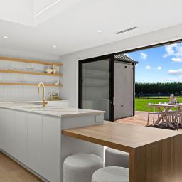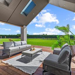 At the heart of the home is the stunning designer kitchen featuring a Prime stone island bench and a generous butler’s pantry. The kitchen flows seamlessly into the dining and family living area, which opens out to a large portico with expansive hardwood decking — the perfect setting for entertaining or relaxing while taking in the surrounding landscape.