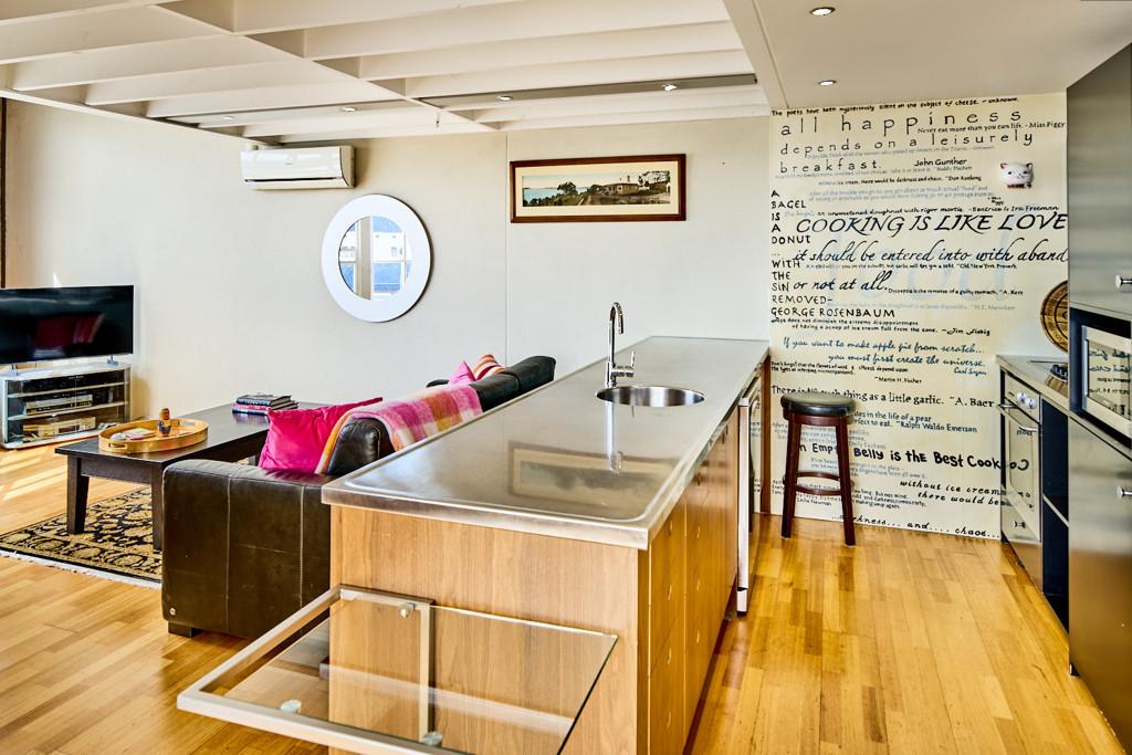 Occupying a prized north-facing corner position, this unique two-level residence beautifully blends original heritage character with a uniquely designed contemporary layout. The expansive open-plan living area is light-filled and inviting, with the intimate harbour outlook taking centre stage. Entertaining is effortless thanks to the modern galley kitchen which connects seamlessly with the open plan living spaces.