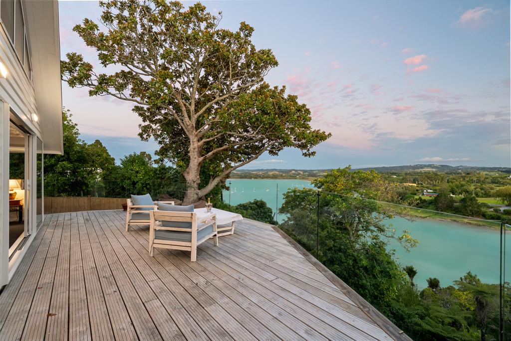 Commanding a privileged position above the Mangemangeroa estuary, this exceptional home embraces panoramic water views and graceful architecture to create an atmosphere of tranquility. Renovated to an impeccable standard, its blend of Hinuera stone and weatherboard delivers a compelling first impression and sets the benchmark for the calibre found within.