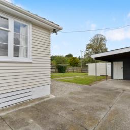 Outside, the large lawn offers plenty of space for kids, pets, or future landscaping ideas. The concrete driveway provides easy access to a carport with an attached shed, giving you practical storage and covered parking.