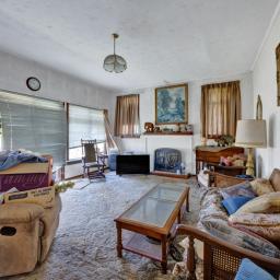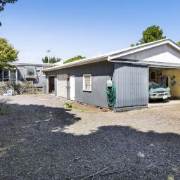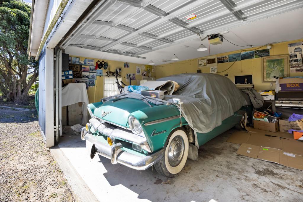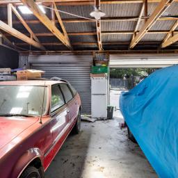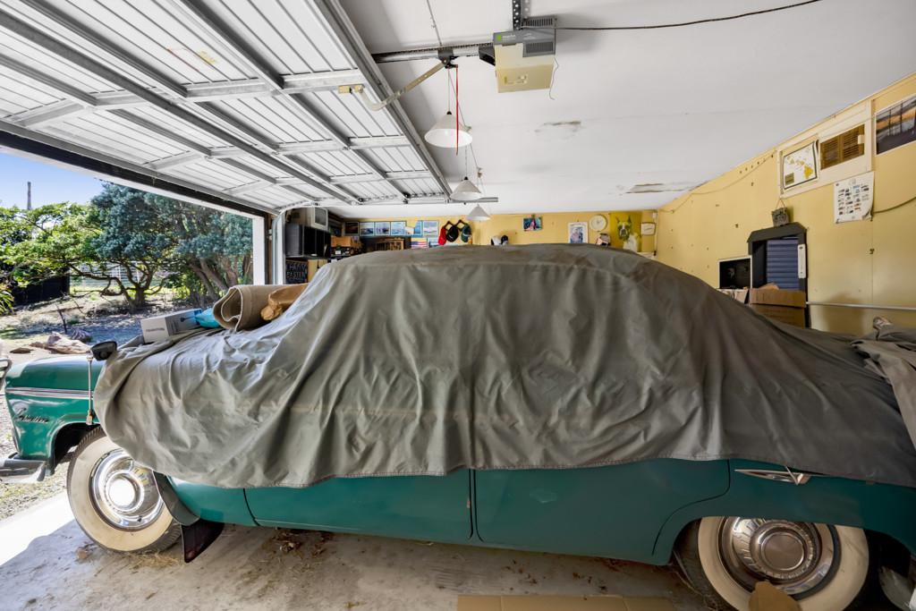 This two-bedroom art deco house was moved on site approximately twenty years ago and is tucked away in the corner of the 1012m2 property leaving plenty of room for the garages. Being a fan of classic cars, my vendors have housed four cars without any trouble in these two garages with room for a workshop in each as well. With power and automatic doors, they are a main selling point of the house.