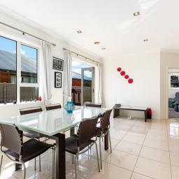 Inside, the open-plan kitchen and dining area form the hub of the home, creating an ideal space for everyday meals and entertaining. Underfloor heating in the kitchen adds an extra layer of comfort, while the adjoining living areas provide options for both shared gatherings and separate relaxation zones.