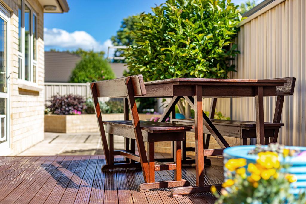 Outdoor living is equally well catered for with a large deck extending from the living areas, creating a natural setting for entertaining or weekend gatherings. The grounds are designed to be manageable while still providing usable outdoor space.