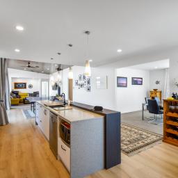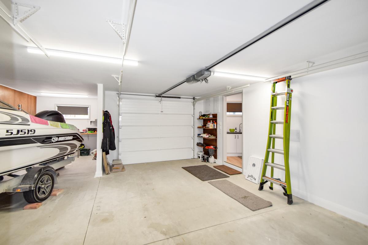 The outdoor area is designed for easy enjoyment, with a stone yard, a touch of green, and a deck that invites you to relax, entertain, or simply soak up the sun. A double garage with backyard access and a handy woodshed add practicality without interrupting the carefree feel. Across the road from a future open green space, the home offers a perfect blend of easy-care living and connection to nature.