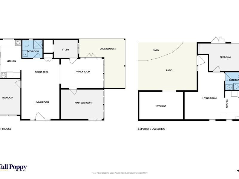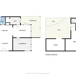 The main home offers a comfortable and practical layout with two double bedrooms plus a separate office perfect for those working from home or needing extra space for hobbies or study. The bathroom is well positioned and the home is kept comfortable year-round with a heat pump providing both heating and air conditioning.