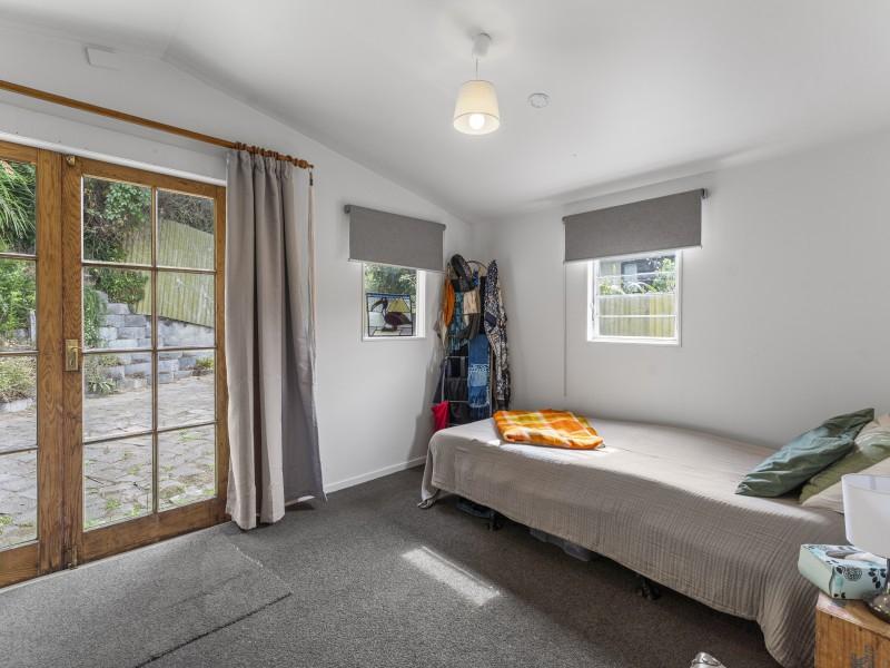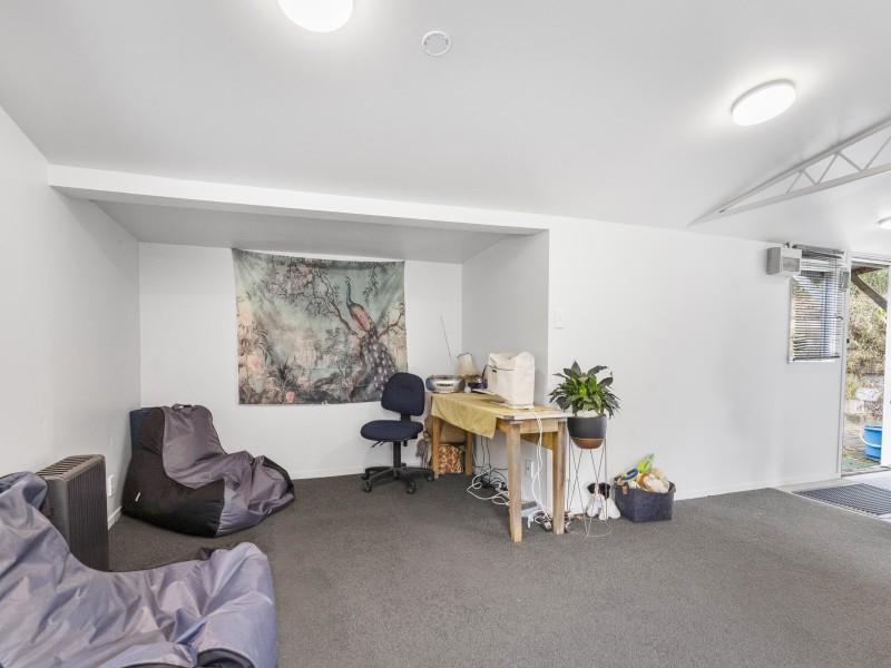 Adding to the appeal is a separate studio positioned away from the main house. This space has been set up for accommodation and sits on its own power meter. Inside you’ll find a double bedroom, wet floor shower, kitchen and lounge area, along with a private paved courtyard flowing from the master bedroom. Please note the studio does not include an oven and is not compliant with Healthy Homes standards, making it best suited for extended family, guests, or flexible living rather than formal rental accommodation.