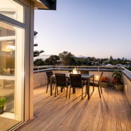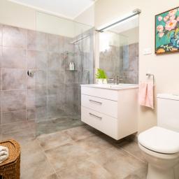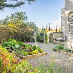 The grounds are landscaped for easy-care and include fruit trees and a raised vegetable bed for daily produce, plus there's the bonus of shops, cafes and the beach nearby.
