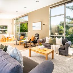 With three double bedrooms, an ensuite, a full bathroom, a guest toilet and a study, this cosy, comfortable, carefree home is a lock-up-and-leave idyll for on-the-go couples and active empty nesters who want space for friends and family when they stay.