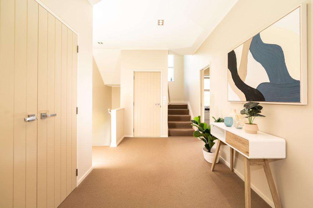 The internal access double garage has floor-to-ceiling storage, including a mezzanine. There's even a lift that ascends to the first and second levels - each of which opens to decking where you feel as if you can reach out and touch the trees.