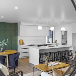 The heart of the home is the open-plan kitchen, dining, and living area designed to bring people together. The kitchen includes a walk-in pantry and connects effortlessly with the living spaces, making it ideal for daily living and entertaining. A separate formal lounge offers additional space to unwind or host guests.