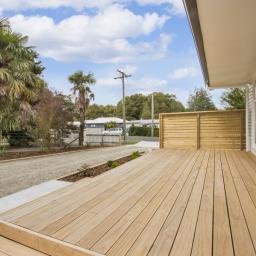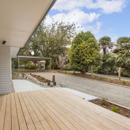 • Outdoor Living: Generous deck area perfect for entertaining or relaxing, surrounded by landscaped gardens. Concrete paths around the house provide easy access and enhance the home's curb appeal.