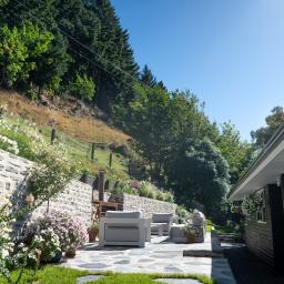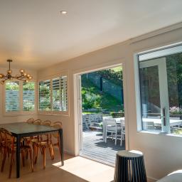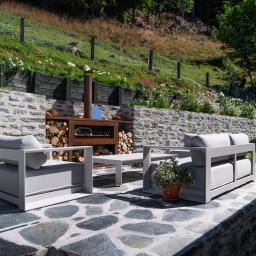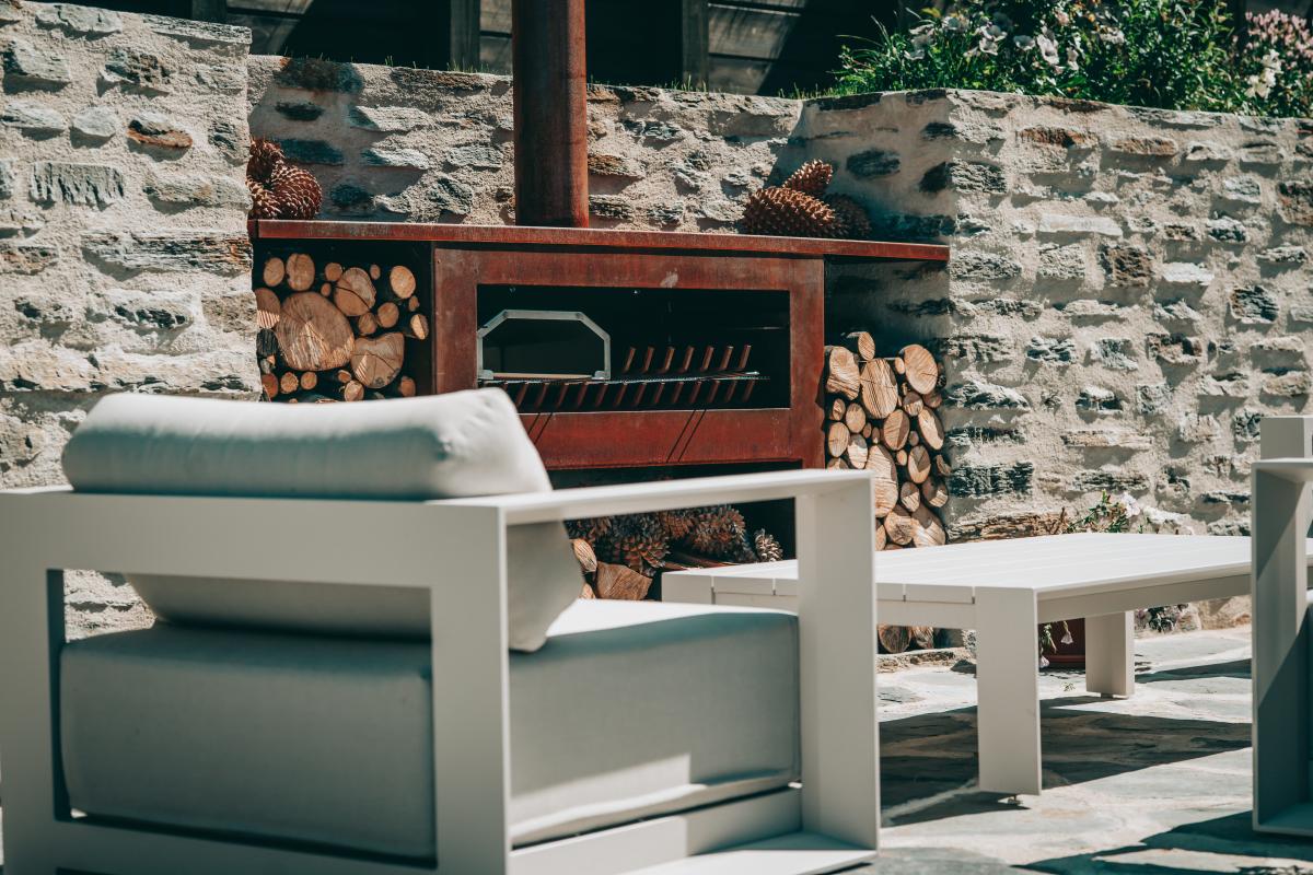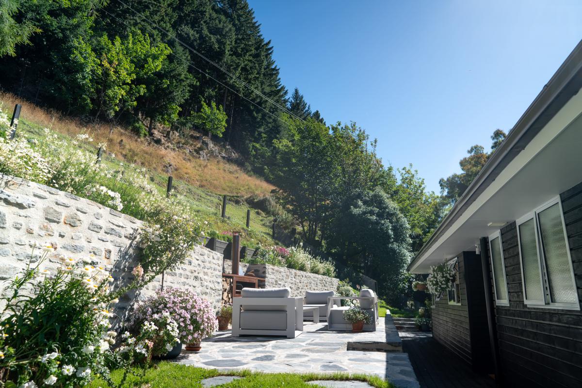 The landscaped gardens offer a rare private sanctuary with versatile entertaining spaces, featuring exquisite Schist stonework by a renowned European Stonemason. A stunning Schist fireplace with BBQ and pizza oven sets the scene for unforgettable alfresco evenings, while a spacious dining terrace invites long lunches in the sun.