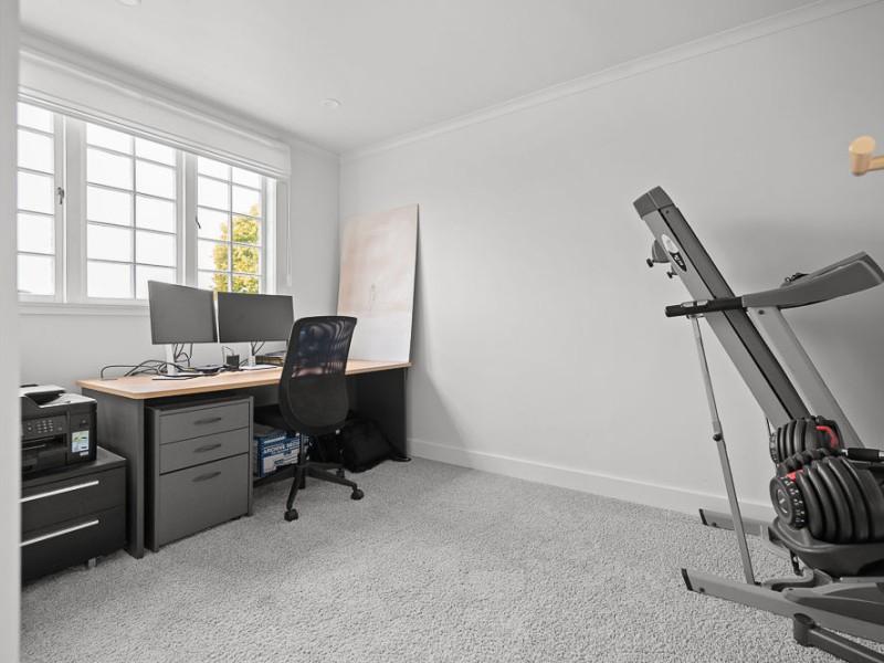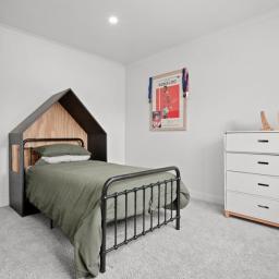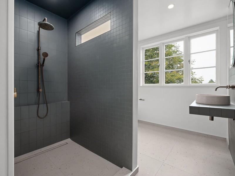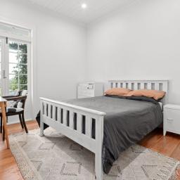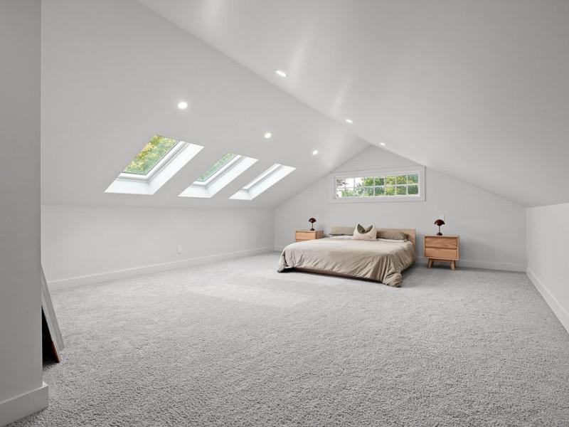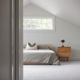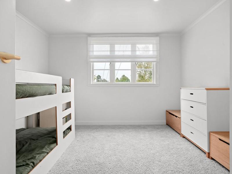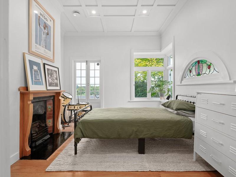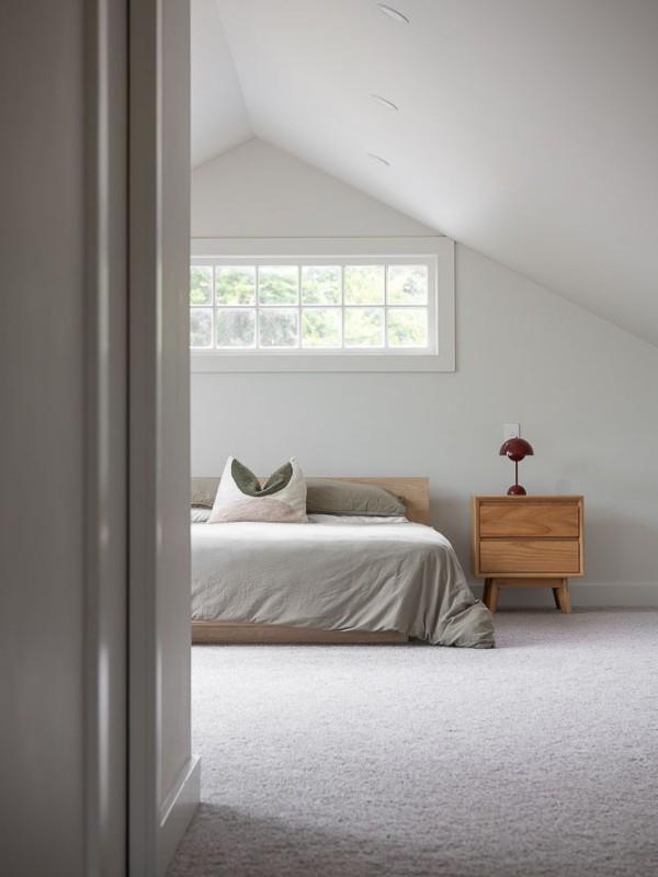 The master suite provides a quiet retreat, featuring a walk-in wardrobe, ensuite and skylights that bring soft natural light into the room.
