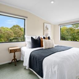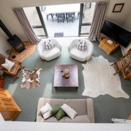 The spacious kitchen forms the heart of the home, connecting easily to the living areas, separate dining room and lounge opening to the outdoor deck - perfect for relaxed entertaining. The lounge itself is a standout, featuring a soaring full-height ceiling and mezzanine walkway above, enhancing the home's sense of space. A woodfire with wetback provides warmth and comfort through the cooler months.