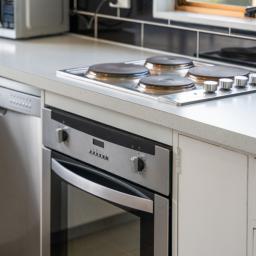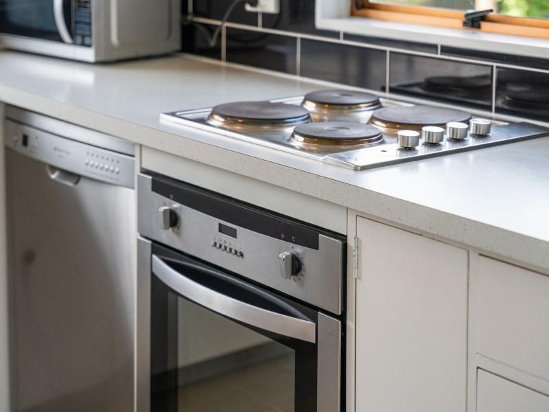The good-sized kitchen looks out over a bright garden setting, with plenty of outdoor space to relax or grow your own.