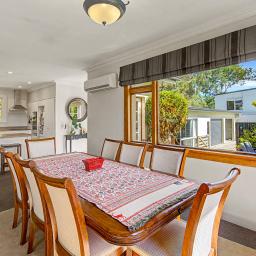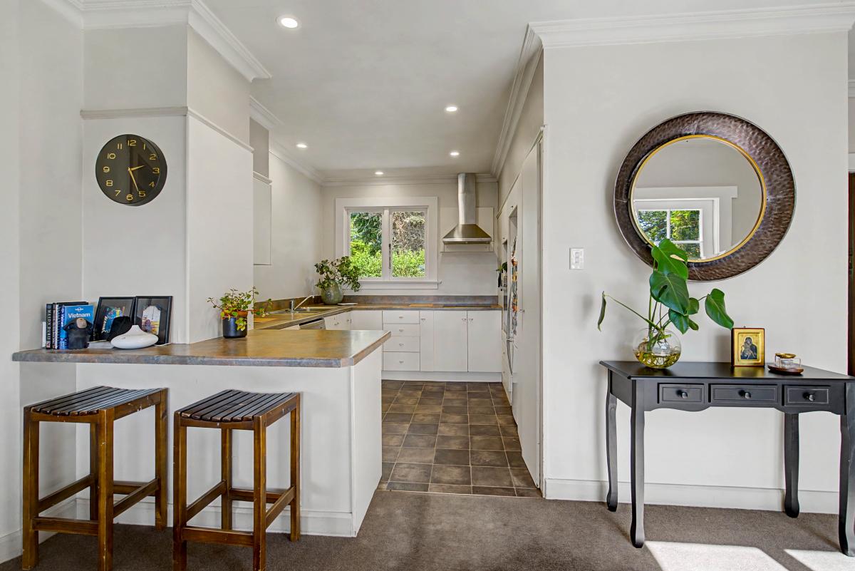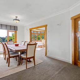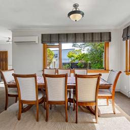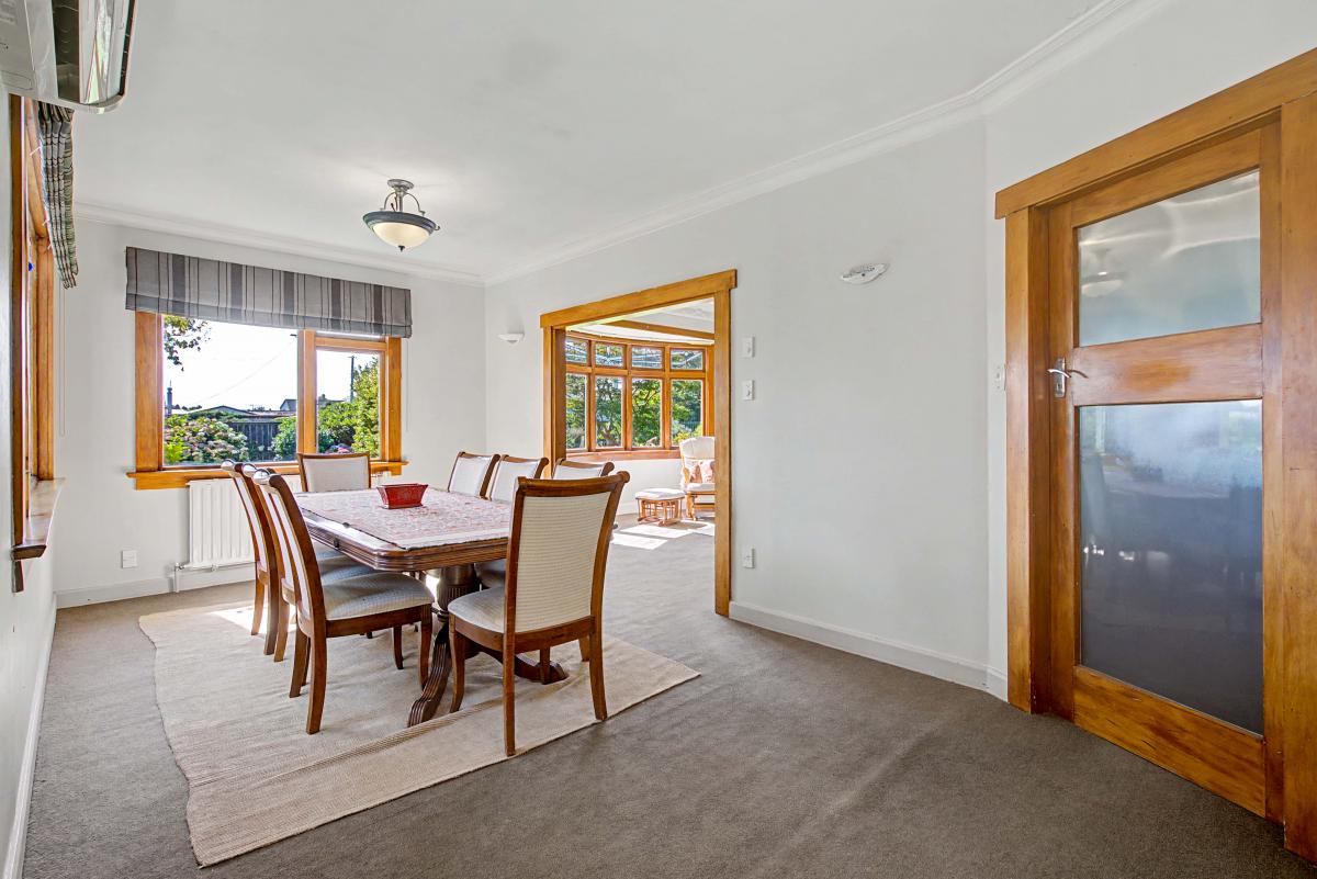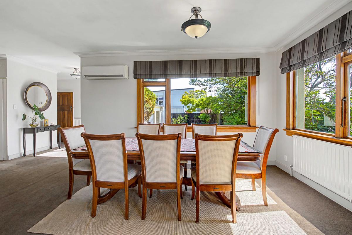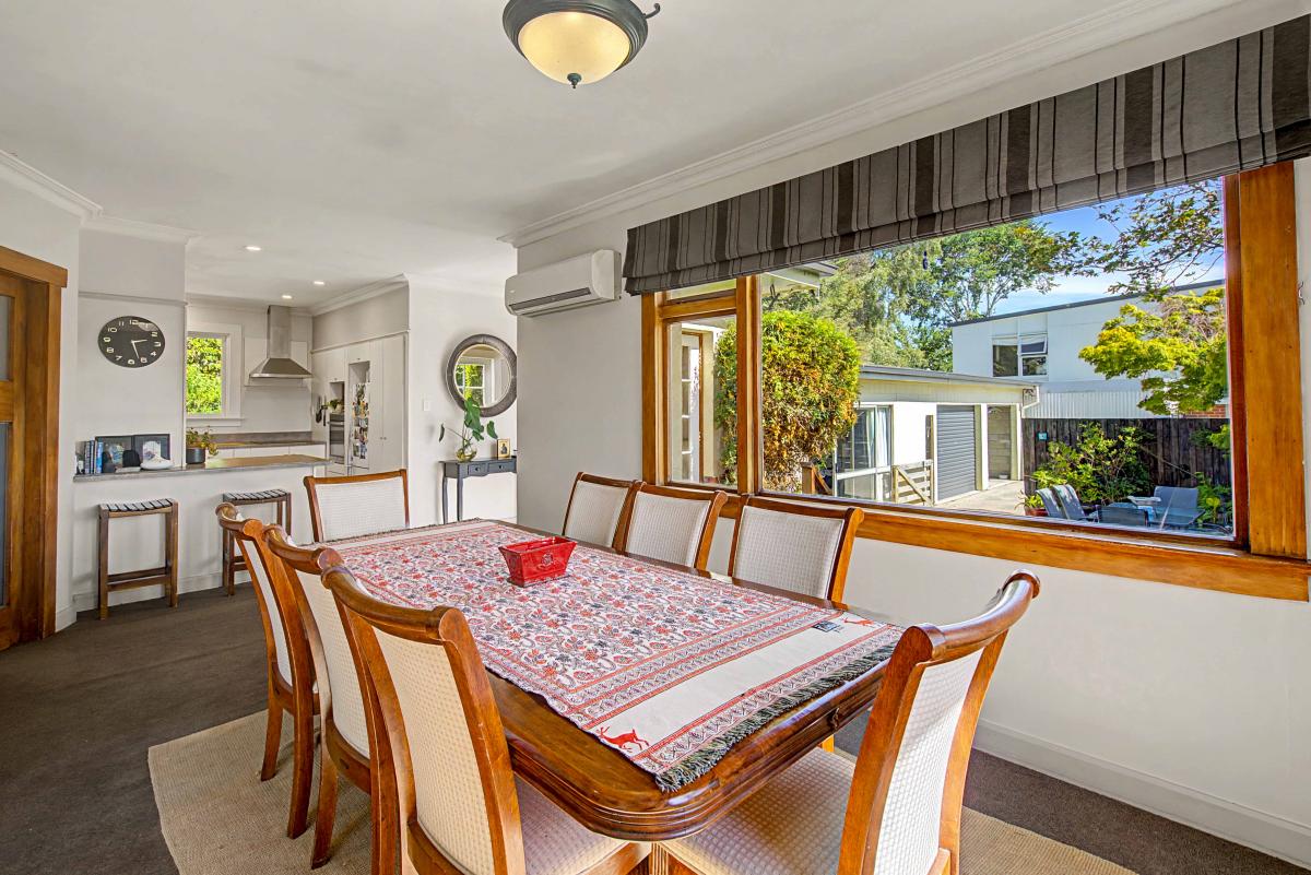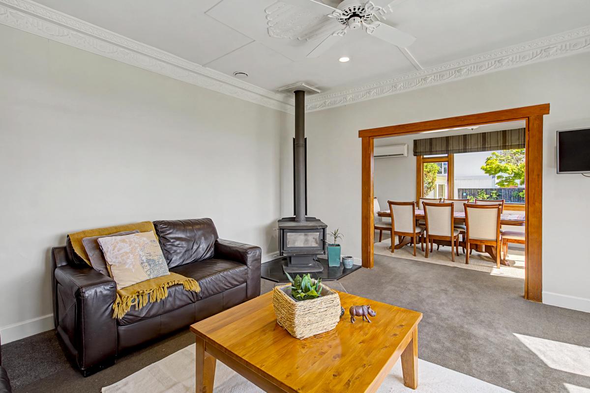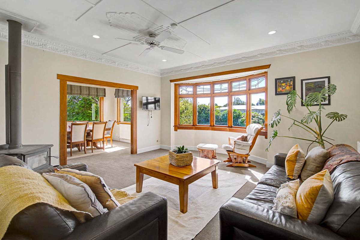 Inside, you'll find three generous sized bedrooms filled with character and excellent storage options. The modern bathroom has been thoughtfully updated to complement the home's classic features. The heart of the home flows beautifully — a functional kitchen that connects to a spacious dining area, which in turn opens into a large living space — perfect for everyday living and entertaining. Comfort is assured year-round with multiple heating options, including a cozy wood burner and an efficient heat pump.