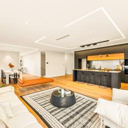 Seamless open-plan flow to living spaces
