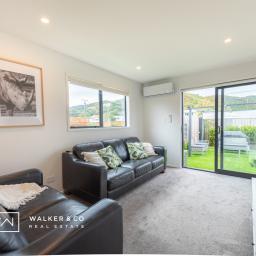 The urban feel kitchen is modern and on trend comprising a dish draw, range hood & quality appliances. Warm and cosy comprising two heat pumps and a hidden laundry, in the kitchen. Upstairs retreat comprises two generous bedrooms consisting of double wardrobes with large windows and accompanied by a luxurious tiled bathroom with quality fittings.