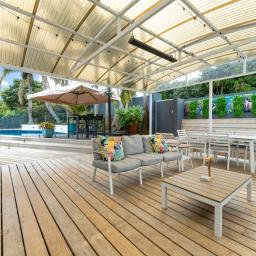 On the main level are big spaces that invite bonding family time, office/homework can be done in one corner or quiet reading in the other, whilst everywhere else the adults can mingle over a wine or two to watch the cricket, and if entertaining is your thing, take the cooking outdoors to the massive patio. This is also the ideal sunny spot to have your morning coffee in total privacy, but it's the pool, the oasis and the amazing feeling of being totally at home in your secluded resort, that makes this home an absolute exceptional viewing option.