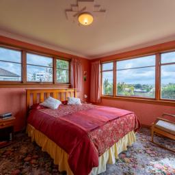 Three bedrooms and two bathrooms. The master is on the first level with an ensuite, walk-in wardrobe and views for miles. This was an addition designed by Barry Bracefield Architects.