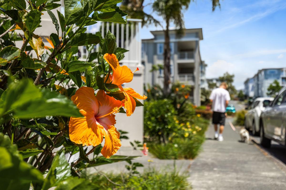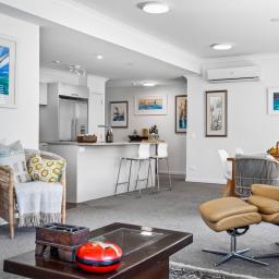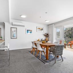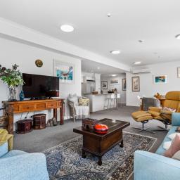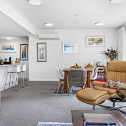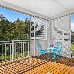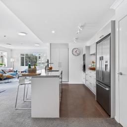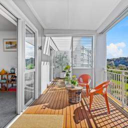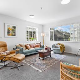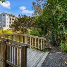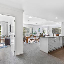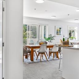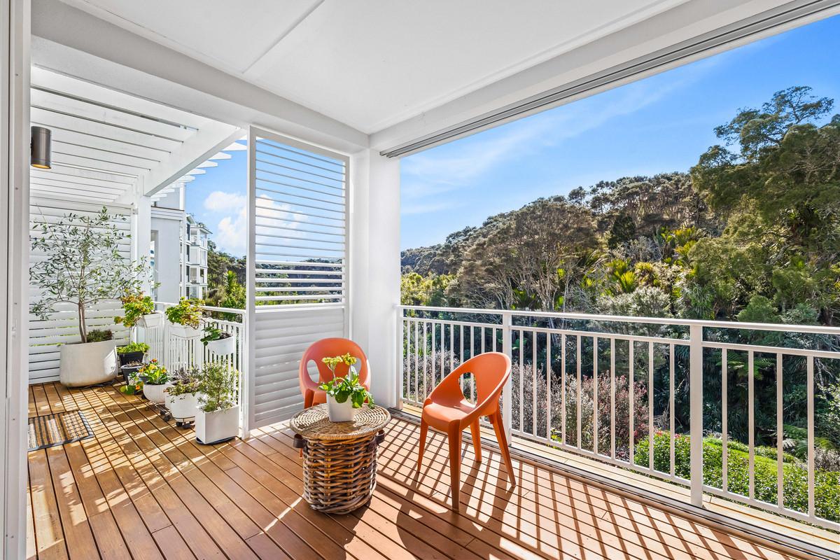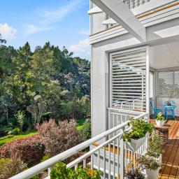 With 145m² of living space, and commanding the ground floor, northeast-corner, this apartment offers light-filled, open-plan living that seamlessly extends onto a covered deck with its own steps to the immaculately maintained garden reserve (pet friendly too). A few steps will take you to the footbridge entry to Alice Eaves Scenic Reserve - 16 hectares of native forest and walking tracks. Enjoy the serene setting for morning coffee or evening barbeques, with uninterrupted views as your backdrop. Plantation shutters and tailored drapery frame the view, adding a touch of timeless sophistication.