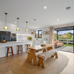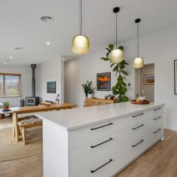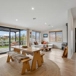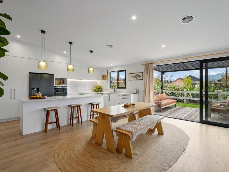 From the moment you step inside, you're greeted by light-filled spaces and expansive mountain views, with the heart of the home centred around a large, well-designed kitchen. Created for both everyday living and entertaining, the kitchen flows effortlessly into the open-plan living and dining areas, all positioned to capture the stunning alpine backdrop.