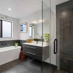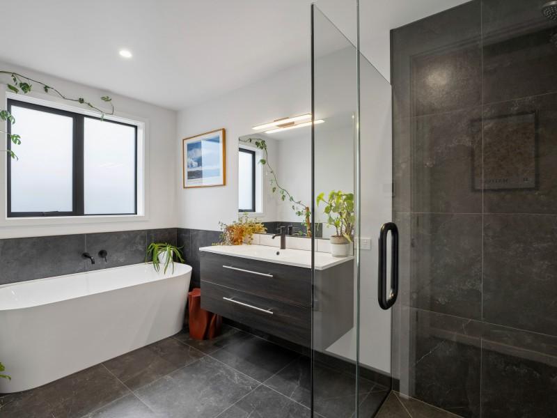 The home offers three well-proportioned bedrooms, including a comfortable master suite, tiled showers, a stylish family bathroom with bath, and the added convenience of a separate toilet.