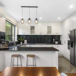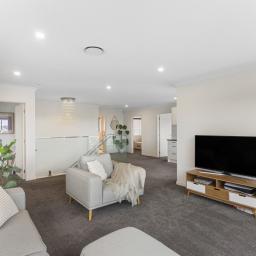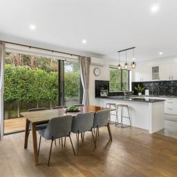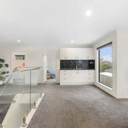 On the main level, high ceilings invite loads of natural light into the open plan living zone, creating a relaxed hub for both family life and entertaining. The modern kitchen delivers excellent functionality with its extensive pantry and storage, while the dining area connects seamlessly to the deck with an awning for all weather outdoor hosting.