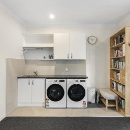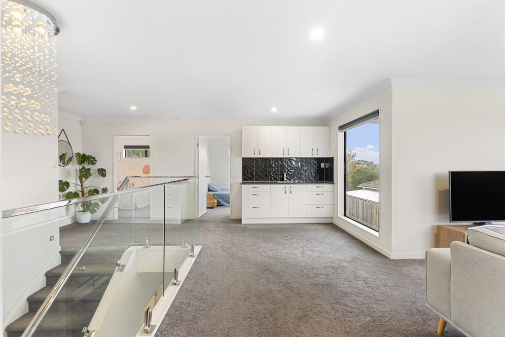 A chandelier staircase leads to a large upstairs living area complete with a kitchenette, ideal for teens, movie nights or working from home. With two living zones, there is room to spread out and keep life organised.