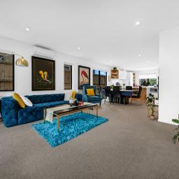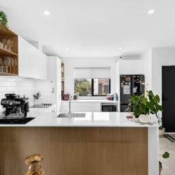 Step inside and enjoy the light-filled open-plan kitchen, dining and living area, thoughtfully designed as the central hub of the home. The contemporary kitchen offers ample storage, quality appliances, and a functional layout perfect for everyday cooking and hosting.
