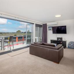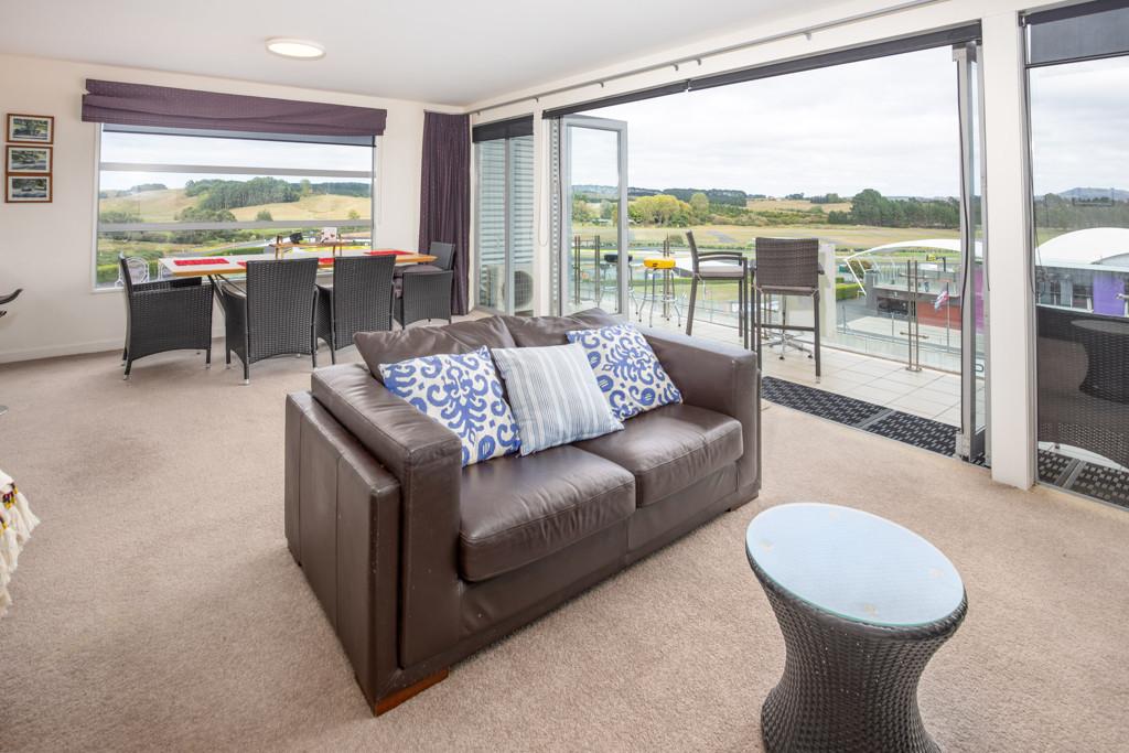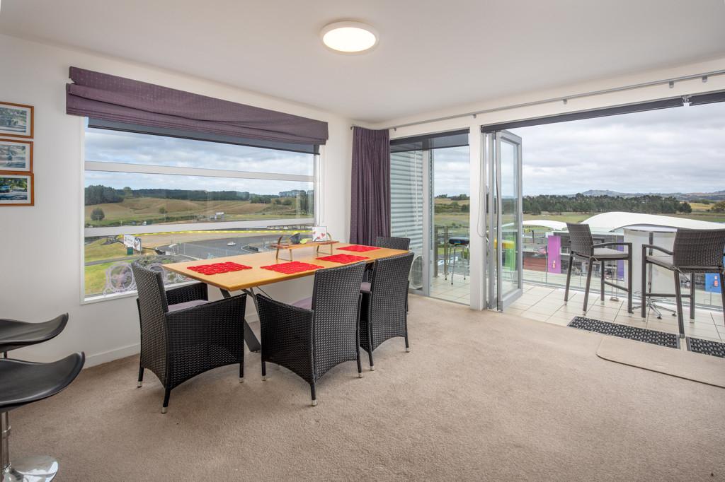 One of only 8 upper floor corner apartments with additional side windows giving fabulous views of turn one, this unit is directly opposite the pits and offers great action viewing from its deck under a full size awning. The apartment comes fully furnished and is ready to occupy, has multiple heat pumps, just bring your personal items and you can enjoy the atmosphere of Hampton Downs, you can smell the coffee being roasted at the cafe just a short stroll over the car park away. The apartment blocks operate under a body corporate, are unit titled, insured and operate with a maintenance plan giving you the freedom to lock and leave as you please. A short distance in travel time gets you to Mercer ,Pokeno, Tuakau and Pukekohe to the North with Te Kauwhata, Te Rapa and Hamilton to the South for any purchases and entertainment with many fine cafes and restaurants available to suit your needs.