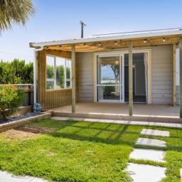 The property boasts a beautifully landscaped outdoor area, complete with a deck and lush grass, perfect for family gatherings or quiet evenings under the stars. The porch adds an extra touch of charm, offering a cozy spot to enjoy your morning coffee while listening to the sound of the ocean.