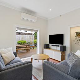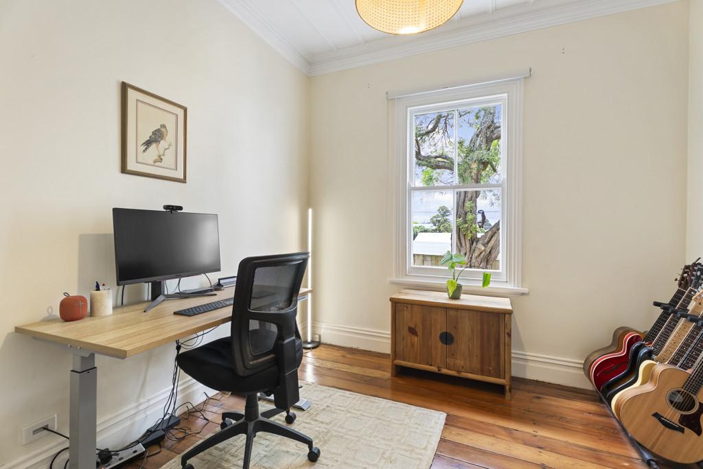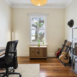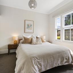 Stepping inside, native timber flooring and impressive high-stud ceilings welcome you, remaining true to the home's timeless appeal. The layout includes three double bedrooms each with built in storage and a sleek, tiled bathroom finished in a clean, contemporary style.