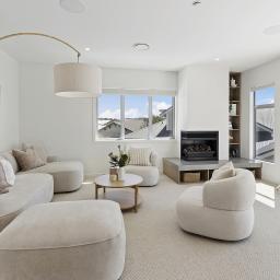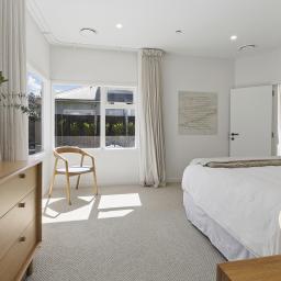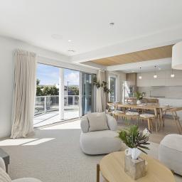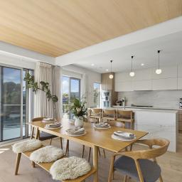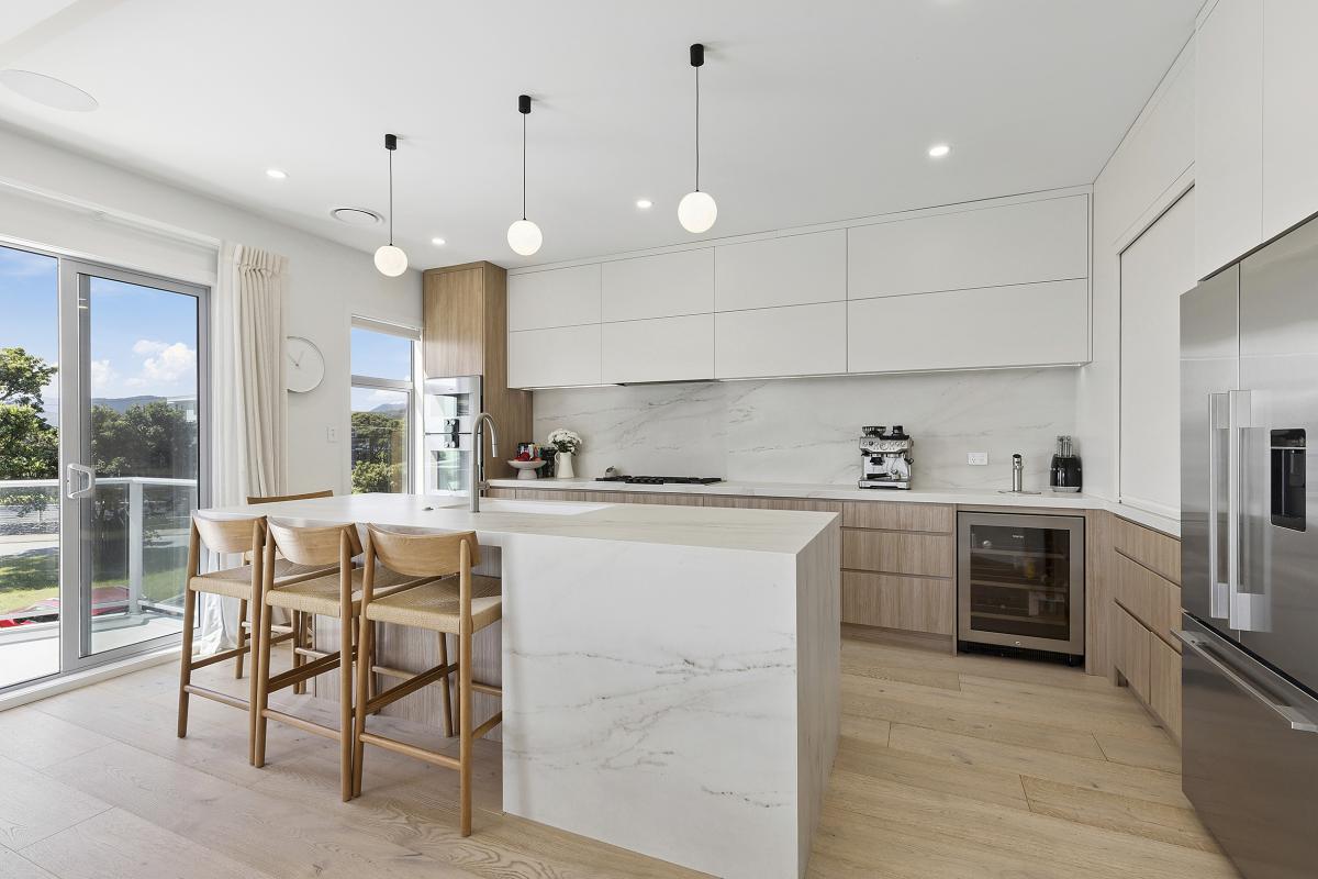 The heart of the home is simply stunning. A beautifully designed kitchen anchors the main living space, flowing into a light filled lounge where expansive windows frame breathtaking views across the water. A calming neutral palette, refined lighting and high quality finishes create a space that feels both luxurious and welcoming.