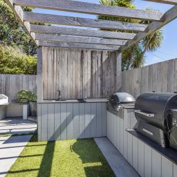 The landscaped outdoor living areas feel like a private seaside resort, with multiple spaces to relax and entertain. A dedicated BBQ and outdoor kitchen, fire and heating, outdoor bath and two outdoor showers create the perfect setting after a swim, surf or walk along the beach just moments away. You are truly spoilt for choice with the entertaining and relaxation spaces on offer.