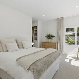At the very top of the home, the fourth bedroom offers something truly special. A peaceful retreat with expansive window seating where you can bask in the sun while taking in sweeping harbour views. Skylights open to welcome the sea air and the gentle sound of the waves below.