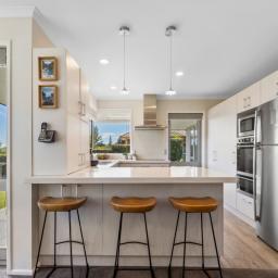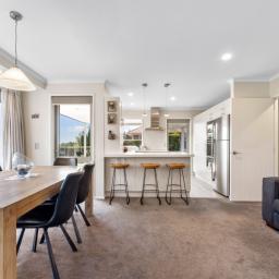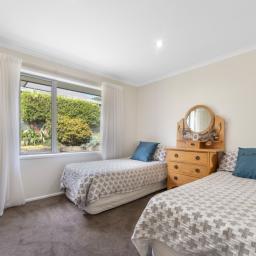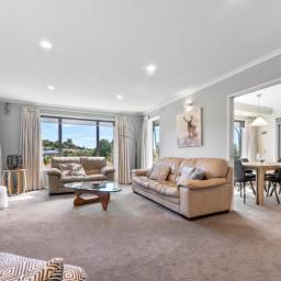 Outside, the property continues to impress with its well maintained gardens that reflect a keen eye for detail, and elevated views that glimpse the sea and enhance the outdoor experience. The patio doubles as a spot for morning coffee or hosting that family BBQ. For those with green fingers your veggie garden is waiting. Garaging is a double with internal access; there’s off street parking for two vehicles and room for a small trailer.