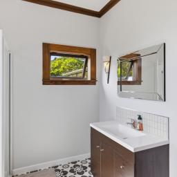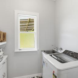 The bathroom is well appointed, and the home also includes the added convenience of a separate toilet and a separate laundry.